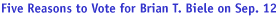 2. Brian T. Biele: Brian believes that we should work to increase voter turnout, especially among young adults 18 years and older!